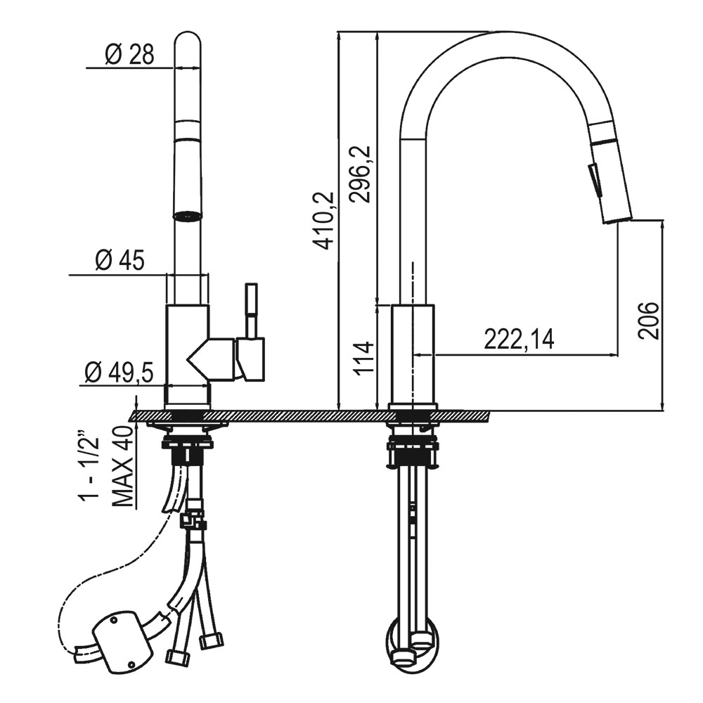 – Fácil instalación el grifo viene acompañado con todo lo necesario para que su proceso de montaje resulte sencillo y eficaz: tanto los latiguillos de acero inoxidable, como los herrajes de latón, la base de sujeción embellecedora o el tornillo m8 están incluidos