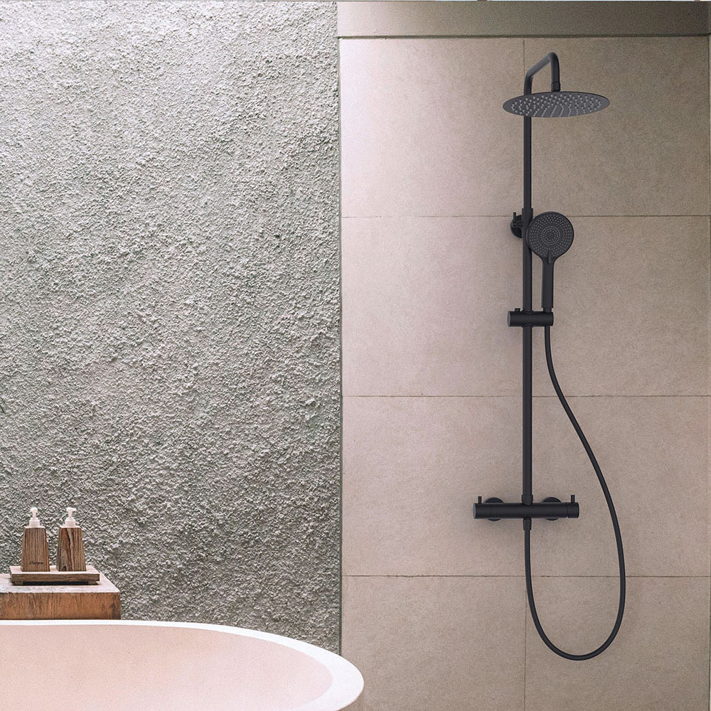 Pack columna y grifo monomando OSLO redonda acabado negro mate fabricado en latón